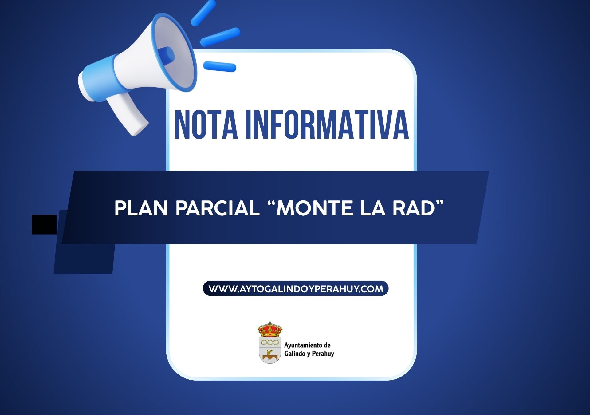 Ante la publicación en el BOCYL del pasado 7 de noviembre sobre el plan urbanístico “Monte de la Rad” y la situación de las infraestructuras de saneamiento y ruido en el término municipal, el Grupo de Gobierno del Ayuntamiento de Galindo y Perahuy desea trasladar a la población la siguiente información: